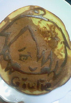 ジュリオの為にホットケーキ焼いたよ。ジュリオあんまり描き慣れてないし反転して描くのやっぱ難しい…!